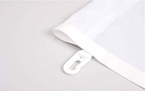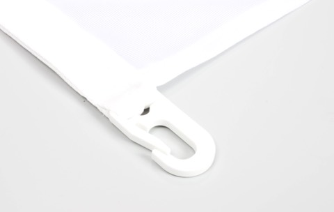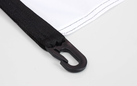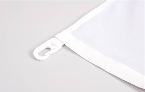 We werken de baniervlag af met een witte of zwarte band en haken in dezelfde kleur. Daarnaast bieden we de keuze tussen een afwerking zonder tunnel of met een tunnel boven. Je bepaalt zelf of deze afwerking aan de linker- of de rechterzijde komt.