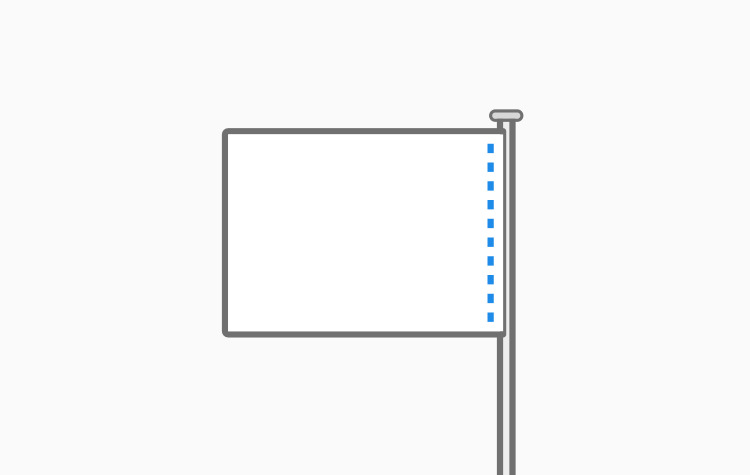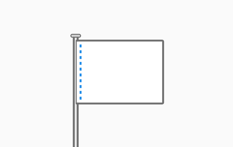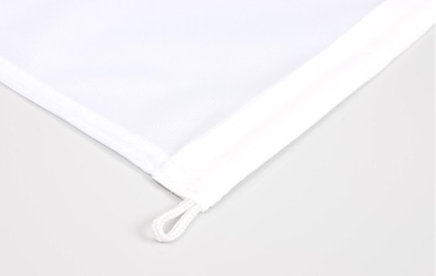 We bieden de keuze tussen een afwerking met witte band en haken of met zwarte band en haken. Je bepaalt zelf of je deze afwerking aan de linker- of de rechterzijde van de mastvlag wilt. Wat past het beste bij jouw ontwerp?