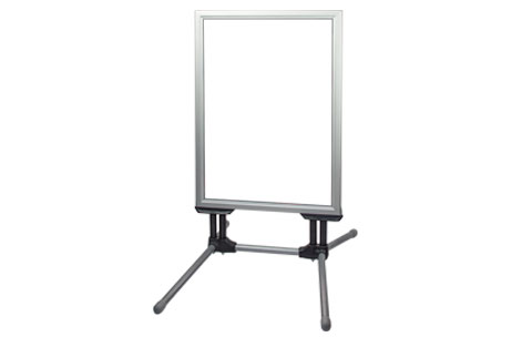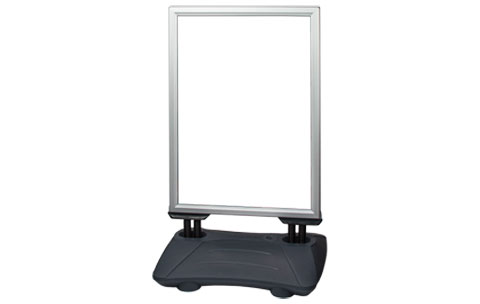 Stoepbord met swingvoet en Stoepbord met watertank: A1 en A0 posters - Systeem Klapbord en Stoepbord met swingvoet: swingbord met tweezijdige kliklijst